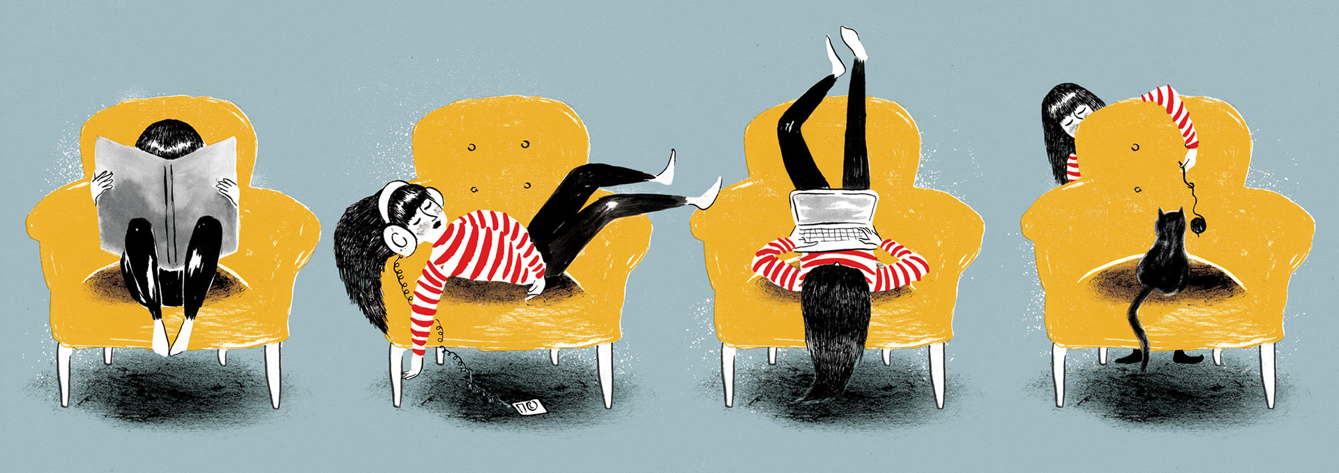Illustration for a double page about being alone.